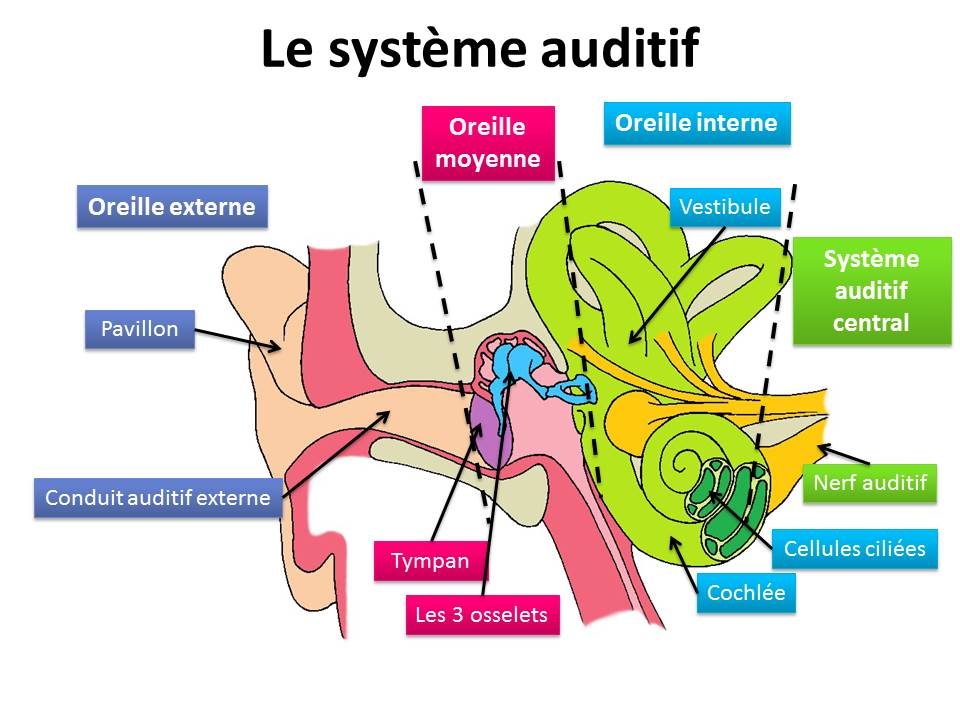 L’oreille est constituée de trois parties : externe, moyenne et interne.